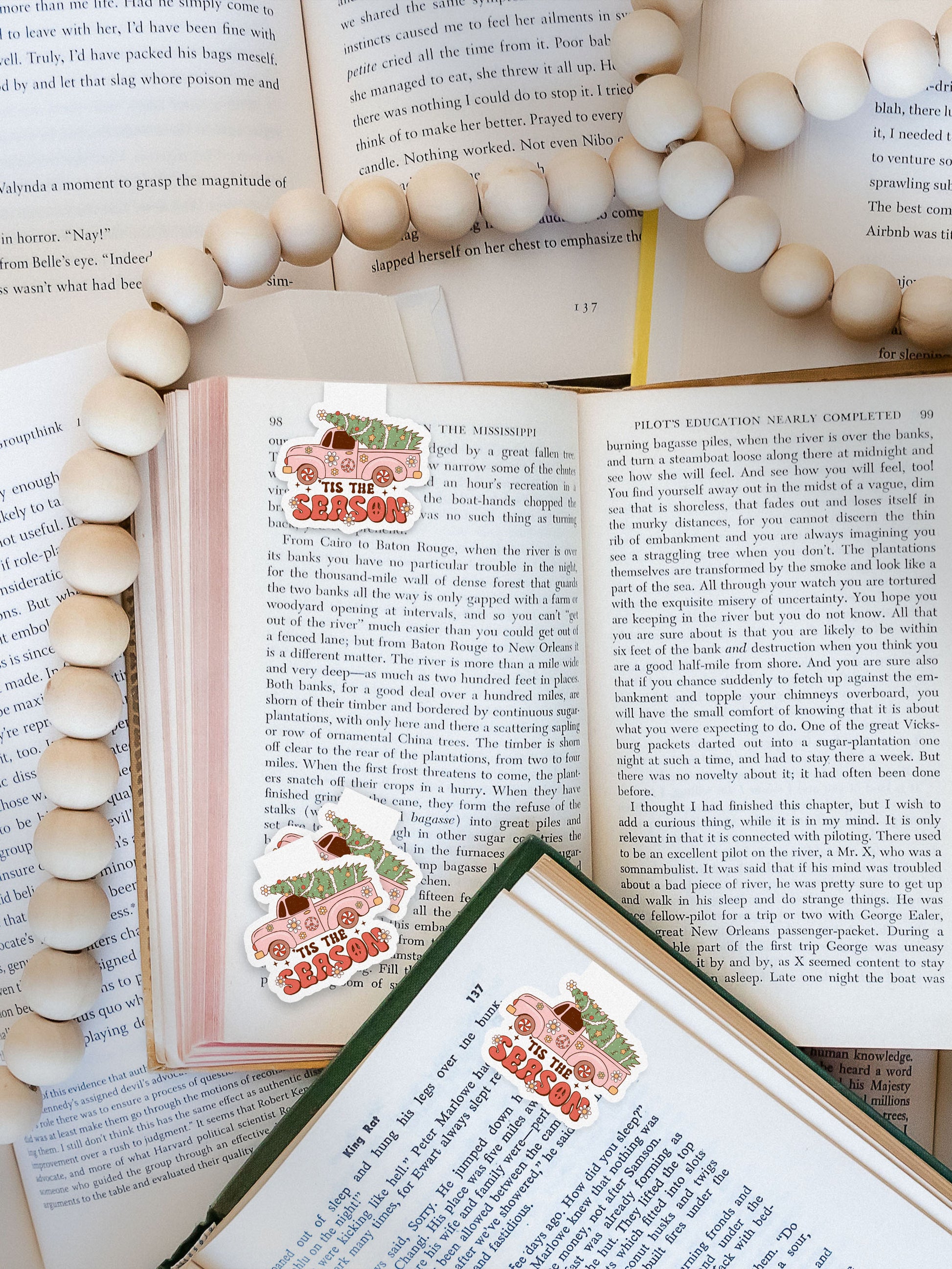 Tis The Season Vintage Pickup Truck Tree Groovy Red Christmas Magnetic Bookmark